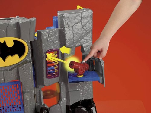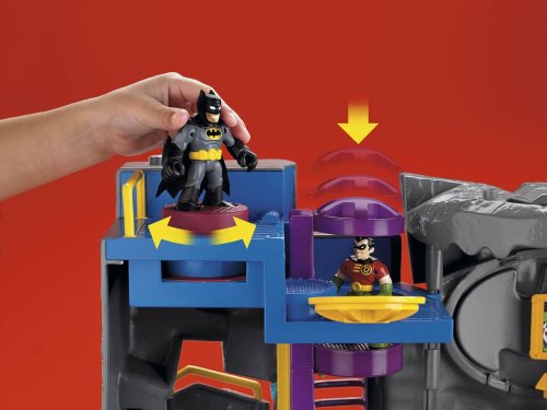 Imaginext Adventures unlock a new adventure every time you play. Imagine... a call comes in from the Commissioner. The Joker is playing tricks again that just aren't funny. Once again, it's time for Batman to take action. Batman takes the elevator to the main floor of the Bat Cave, where Robin has already lowered the drawbridge at the entrance. Holy grappling hooks! The Penguin is right outside! Batman must head for the side door to make a quick exit on the Bat Cycle. Playset includes Batman and Robin figures. Add to the adventure with additional Super Friends figures, sold separately. Playset measures 21"L x 6"W x 16"H.